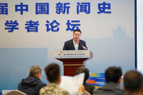 隋岩教授代表中国新闻史学会致辞,他表示,本届论坛的主题立意高远,意蕴深邃,精准地捕捉到了当前中国新闻学研究的时代脉搏与核心命题。研究者要于“破立之间”探寻中国新闻学的根脉与灵魂,以“两个结合”筑牢中国新闻学研究的文化主体性,并寄语青年学者,扎根新闻实践,做“破立”征程上的先锋与栋梁。